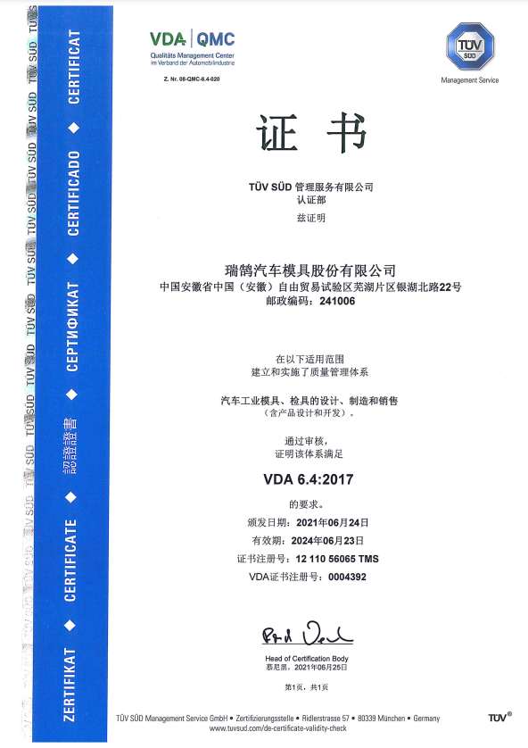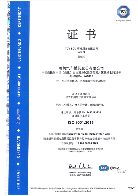 ????????瑞鵠汽車模具股份有限公司成立于2002年3月,坐落于中國(安徽)自由貿(mào)易試驗(yàn)區(qū)蕪湖片區(qū)銀湖北路 22 號,股本數(shù)18360萬,公司的主營業(yè)務(wù)為汽車沖壓模具、檢具及焊裝自動化生產(chǎn)線的開發(fā)、設(shè)計(jì)、制造和銷售,主要產(chǎn)品有沖壓模具(覆蓋件模具、高強(qiáng)板模具)及檢具、焊裝自動化生產(chǎn)線、一體化鋁壓鑄零部件,為國內(nèi)少數(shù)能夠同時(shí)為客戶提供完整的汽車白車身高端制造裝備、智能制造技術(shù)及整體解決方案的企業(yè)之一。